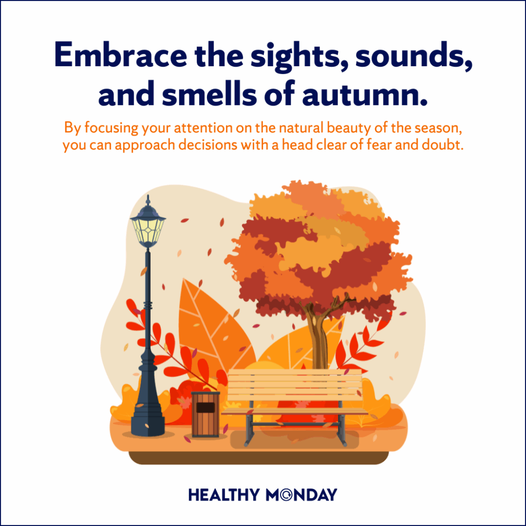 Another way to ready yourself for change is to embrace the sights, smells, and sounds of autumn. By focusing your attention on the natural beauty of the season, you can approach decisions with a head clear of fear and doubt.